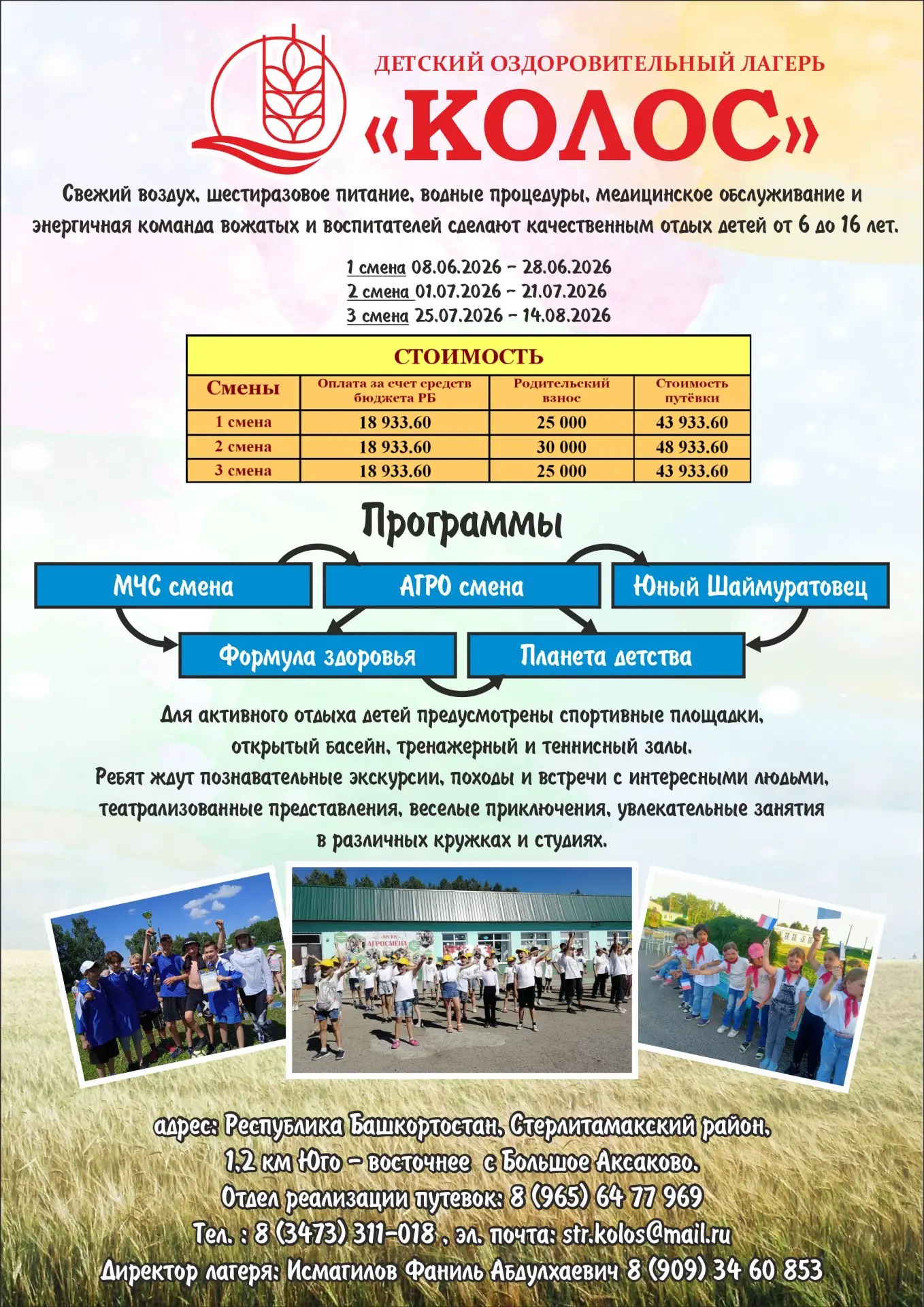Не упустите свой шанс присоединится к нам и сделать этот летний отдых незабываемым! Добро пожаловать в лагерь «Колос»!