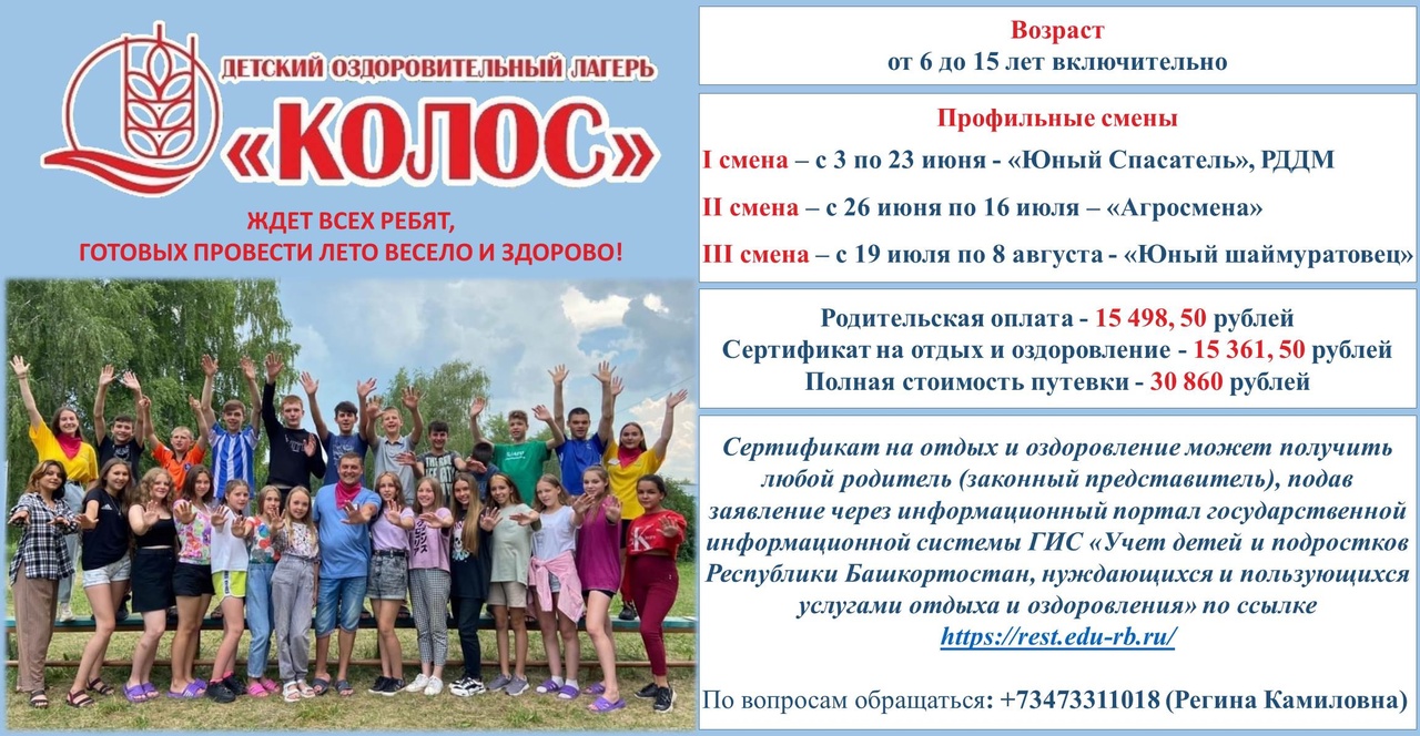 Детский оздоровительный лагерь «Колос» – это уникальная возможность для ребёнка (возраст от 6 до 15 лет включительно) провести лето незабываемо, весело и с пользой для здоровьявсего за 15 498,5 рублей родительской оплаты!