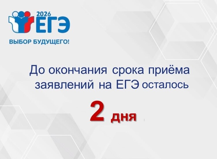 До окончания срока приёма заявлений на ЕГЭ-2026 осталось 2 дня!