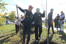 Плечом к плечу, вооружившись хорошим настроением и необходимым инвентарем, участники дружно взялись за работу. Совместными усилиями они носили воду, бережно поливали молодые саженцы и готовили посадочные ямки.