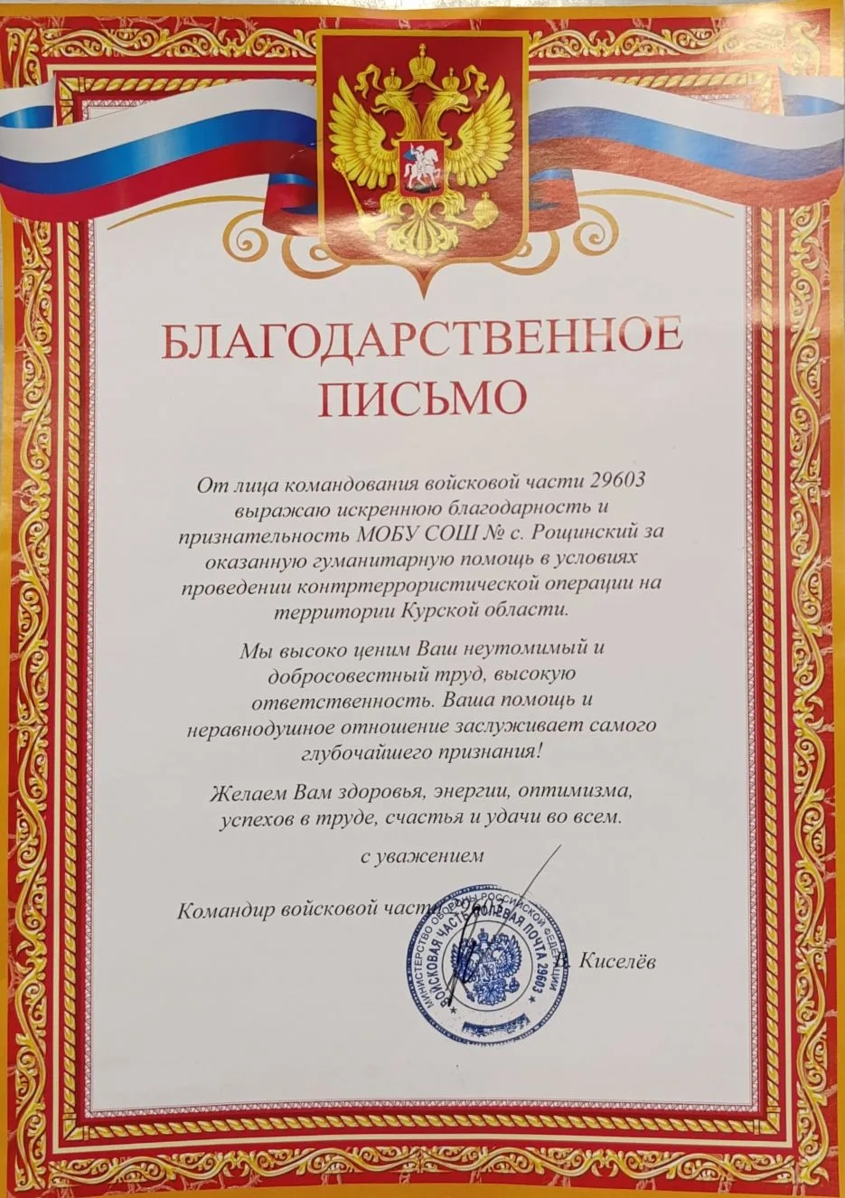 От личного состава поступили слова благодарности, а от командира воинской части — официальное благодарственное письмо, что свидетельствует о значимости данной работы.