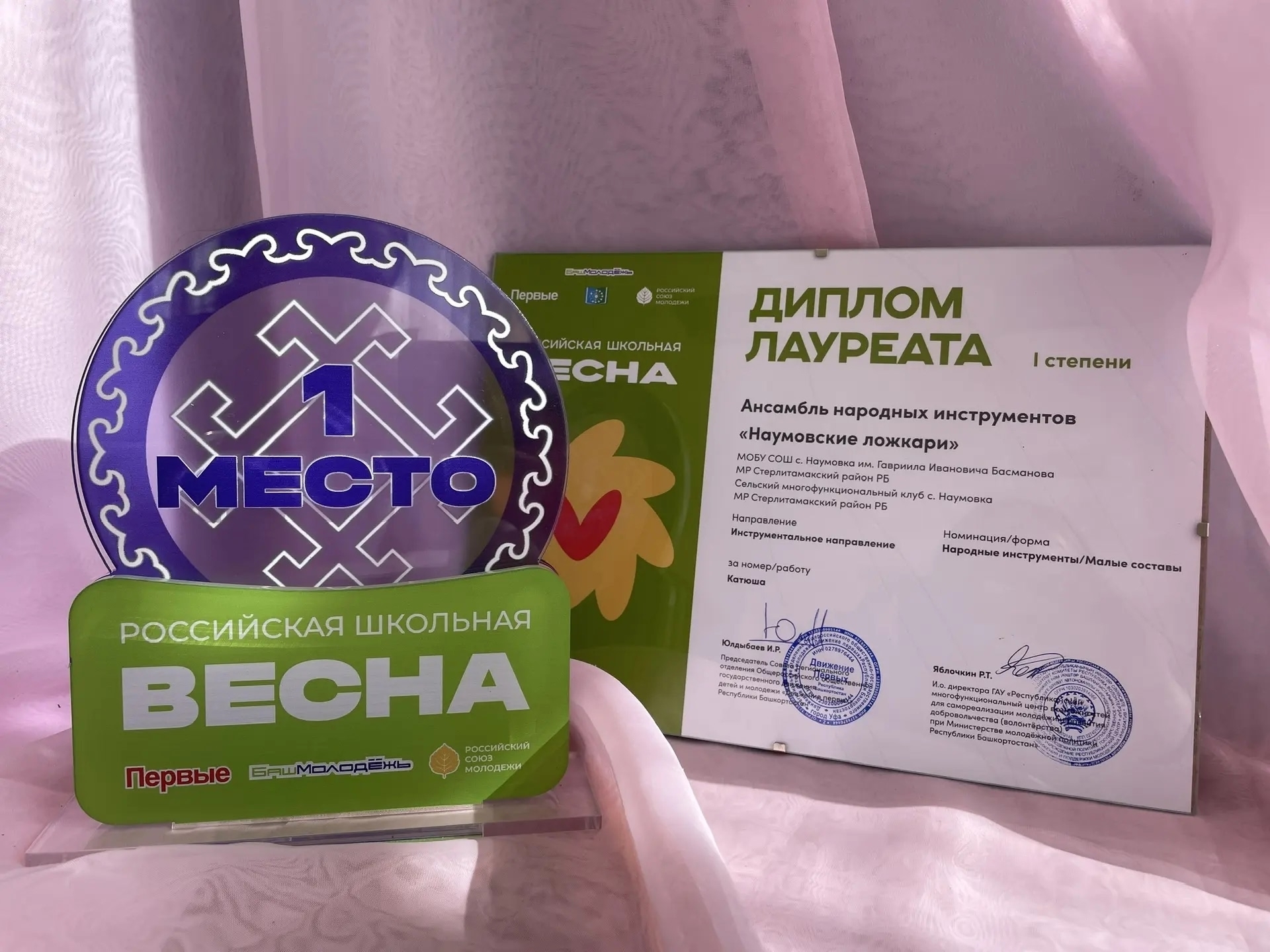 Также Лауреатами I степени в номинации «Инструментальное исполнительство» стали участники коллектива «Наумовские ложкари» школы имени Г.И. Басманова села Наумовка: Амелия Кулушева, Лия Шарипова, Элина Рахимова, Денис Жданов, Кира Анкудинова, Азалия Кулушева и Татьяна Поскребышева.