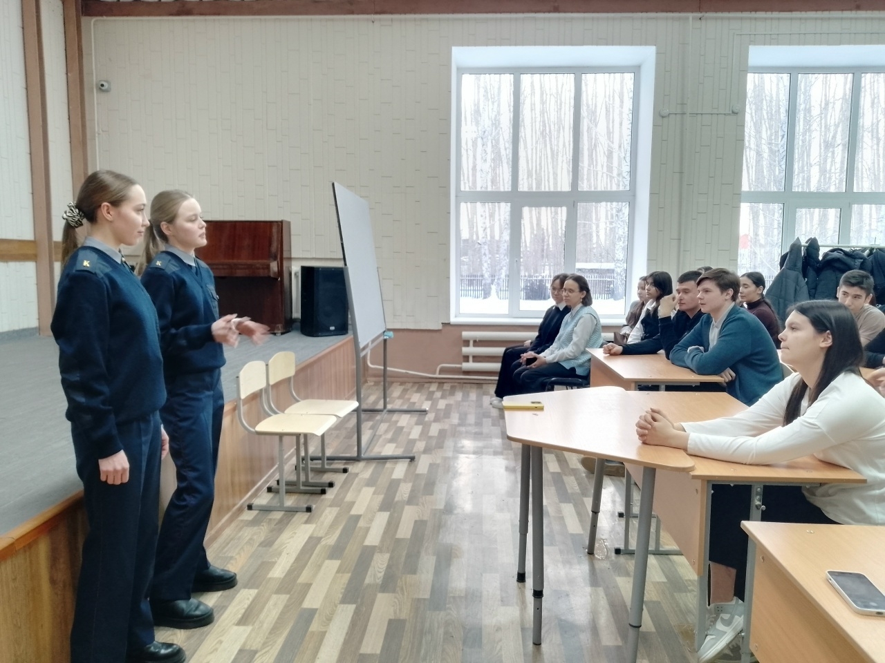 В МОБУ СОШ с. Новая Отрадовка им. А. В. Трошина состоялась профориентационная встреча старшеклассников с начальником МФ ФКУ УИИ УФСИН России по РБ, подполковником внутренней службы Владиславом Валентиновичем Акимовым и курсантами Пермского института ФСИН России.