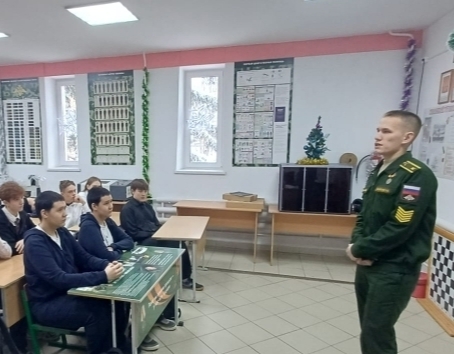 В рамках месячника военно-патриотической работы в МОБУ СОШ с. Новая Отрадовка им. А. В. Трошина состоялась профориентационная встреча для обучающихся 9-х классов с курсантом Пензенского артиллерийского инженерного института Кириллом Кирилловым.