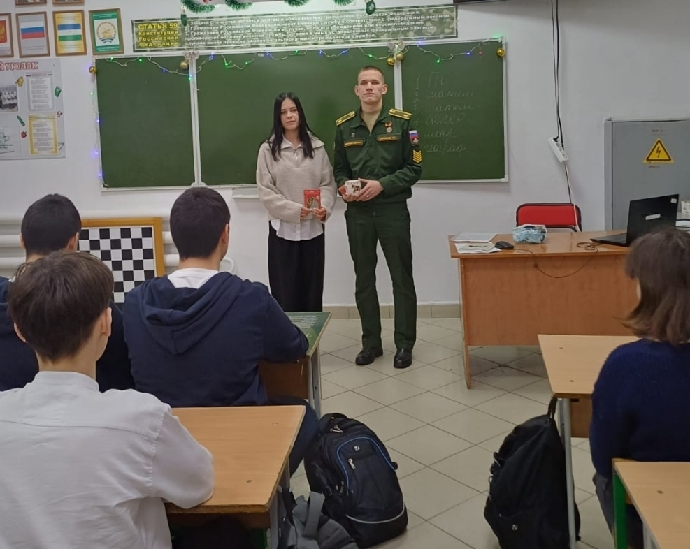 В ходе беседы Кирилл подробно осветил важные для будущих абитуриентов темы: процедуру поступления, распорядок дня и учебную нагрузку курсанта, а также возможности карьерного развития в Вооружённых Силах РФ. Девятиклассники активно включились в диалог, задав множество вопросов об особенностях обучения и жизни в военном учебном заведении.