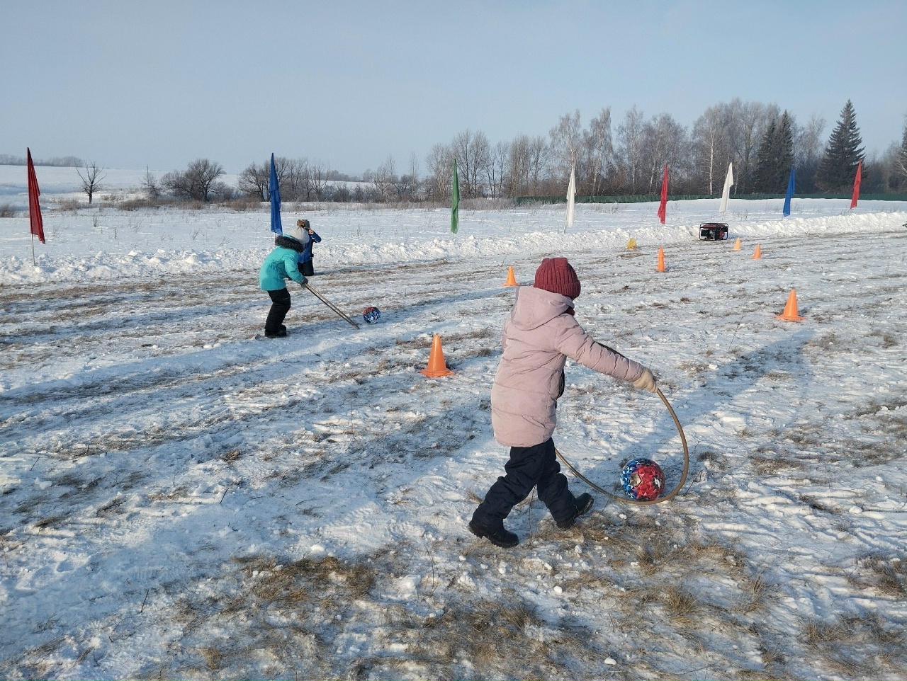 Участники состязались в «Весёлых стартах», включавших эстафеты с: