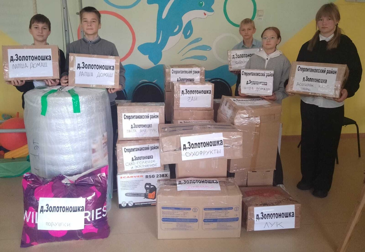 В честь 95-летия Стерлитамакского района обучающиеся, родители и учителя школы имени Героя Советского Союза Ткаченко Якова Тарасовича д. Золотоношка приняли участие в акции по сбору гуманитарной помощи.