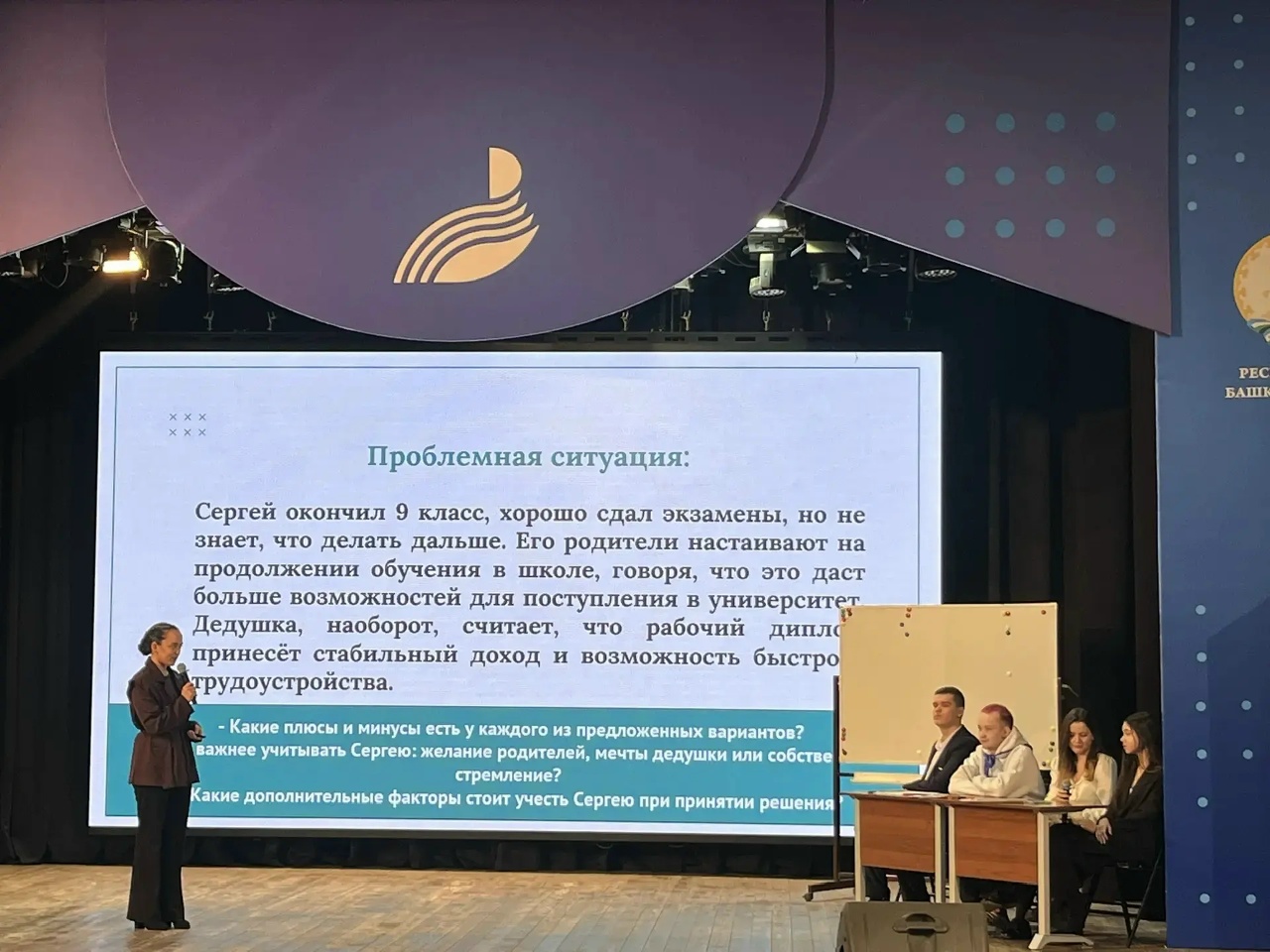 Ярким событием программы стал мастер‑класс «От теории к практике: использование проблемной ситуации на уроках в школе», который представила Фаизова Элина Ирековна — учитель из МОБУ СОШ с. Новая Отрадовка им. А. В. Трошина.