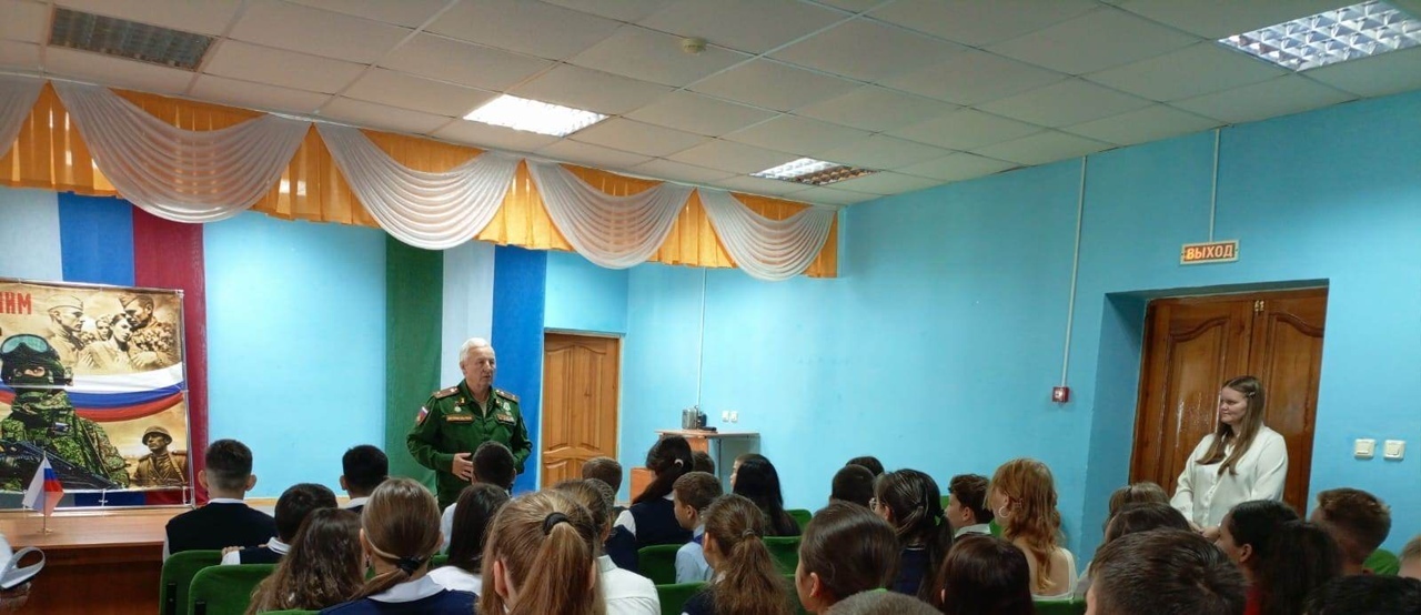 1 сентября в МОБУ СОШ села Первомайское состоялся Урок мужества, на котором присутствовал боец специальной военной операции Мигранов Фарит Абдрахманович.