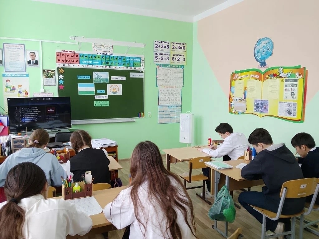 Старшеклассники вместе с советниками по воспитанию и учителями истории участвовали в викторинах о Башкортостане и смотрели фильм Булата Юсупова «Первая республика».