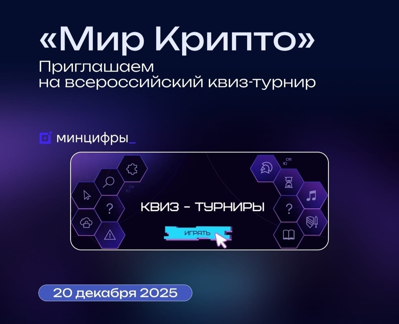 20 декабря 2025 года среди школьников 7-11 классов и студентов пройдет Всероссийский онлайн-турнир «Мир Крипто». Мероприятие будет посвящено криптографии, истории и эволюции криптографических технологий.